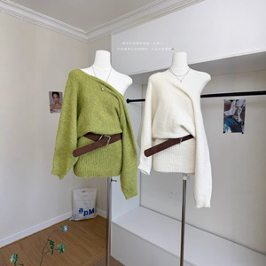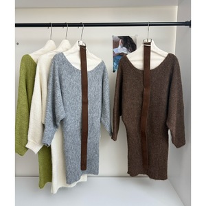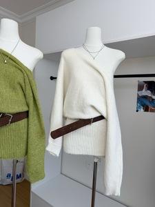 2025早秋新款法式露肩慵懒风毛衣连衣裙显瘦收腰包臀裙