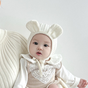 宝宝帽子韩可爱兔耳朵护耳帽婴幼儿柔软保暖胎帽新生儿防风帽批发