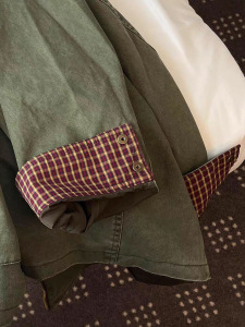 原物推荐!复古军绿色袖口拼格子设计工装牛仔外套女2025秋季新款