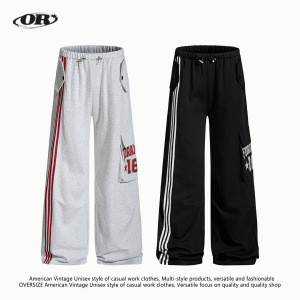 OREETA丨美式学院风三条杠运动休闲裤潮牌中性风宽松阔腿直筒卫裤