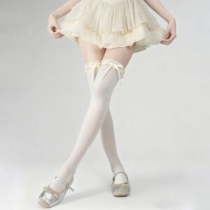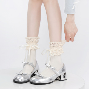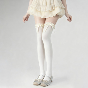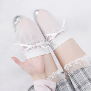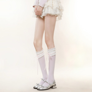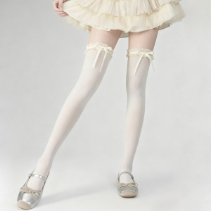 芭蕾风蝴蝶结绑带丝袜lolita过膝袜甜美女jk薄款甜美洛丽塔长筒袜