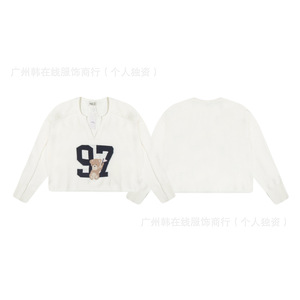 小海鸥秋冬复古提花数字小熊短款毛衣针织宽松慵懒风显瘦时尚韩国