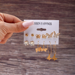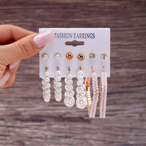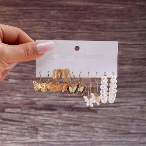 欧美跨境几何珍珠耳环女个性时尚创意圆形简约不规则蝴蝶耳圈批发