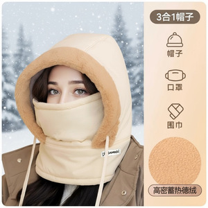 冬季保暖雷锋帽子加绒加厚防寒面罩围脖一体帽户外防风骑行包头帽