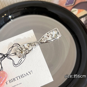 银色水钻锆石蝴蝶结侧边发夹女2025新款高端侧边碎发刘海夹子发卡