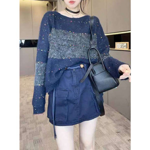 毛衣女2025秋季新款欧洲站慵懒风宽松百搭撞色拼接针织衫长袖上衣