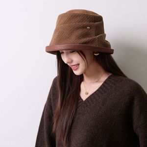 新款秋冬卷边渔夫帽女出游灯芯绒保暖盆帽小众高级感气质百搭帽子