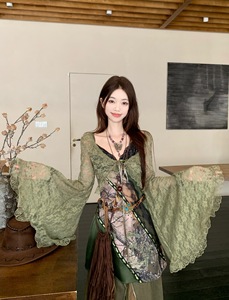 适美设计感蕾丝开衫外套内搭别致吊带女秋季显瘦半身裙三件套