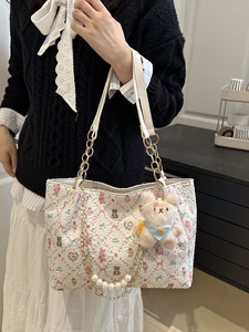 甜美风洋气单肩腋下托特包女包2025秋冬款休闲时尚可爱挂件包包女