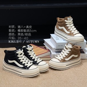 韩版磨砂皮高帮鞋女2025秋季新款厚底防滑运动休闲百搭时尚板鞋潮