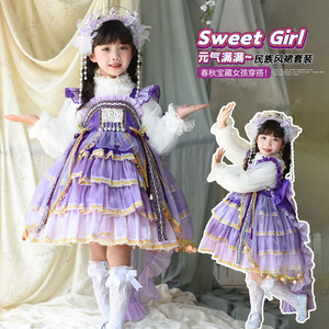 女童洛丽塔2025秋季新款公主裙儿童生日礼服连衣裙民族风蓬蓬裙子