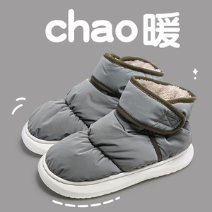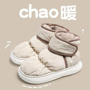 防水棉鞋女秋冬季新款室内家居加绒包跟厚底棉鞋男外穿