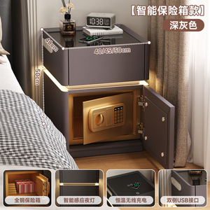 智能床头柜保险柜一体带密码锁卧室家用小型轻奢简约现代实木柜子