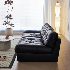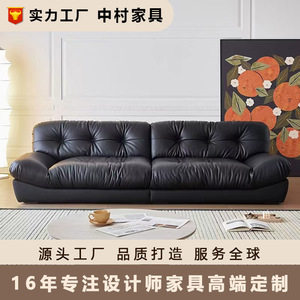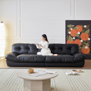 云朵真皮沙发意式现代简约直排黑色法式客厅羽绒沙发小户型
