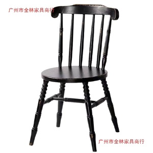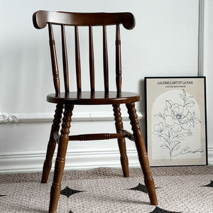 复古法式咖啡甜品奶茶店白茬实木椅家用中古靠背椅美式温莎餐桌椅