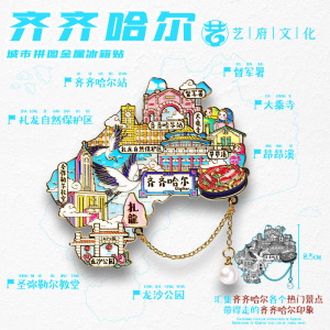 泉州九寨沟开封阿勒泰齐齐哈尔漠河金属旅游吊坠冰箱贴文创纪念品