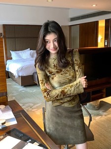 25秋冬新款轻奢优雅简约时尚百搭网纱植绒荡领打底11