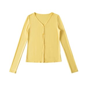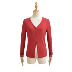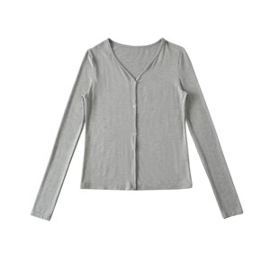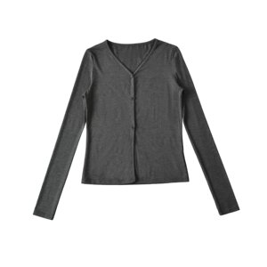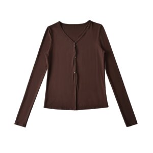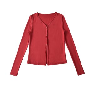 RY25113-25夏季新款 法式修身显瘦通勤上衣V字领纽扣长袖开衫外套