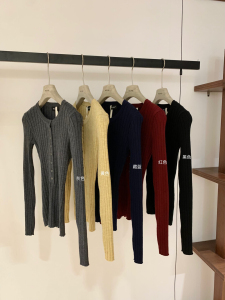 WGWE秋季新款法式简约修身显瘦百搭单排扣圆领长袖针织衫女W7199