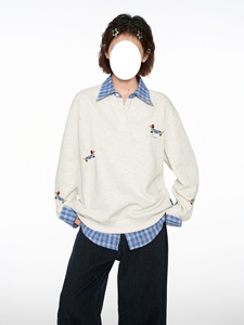 2025春秋新款小狗刺绣格子拼接假两件卫衣男女同款宽松学院风上衣