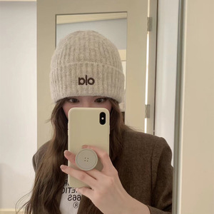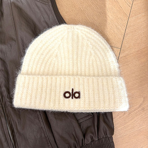 秋冬韩系毛线针织帽英文刺绣ola百搭毛线帽洋气时髦男女针织冷帽