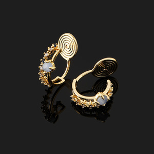 EH188温柔蓝色猫眼石耳环耳圈复古小众圈圈蚊香盘耳夹无耳洞耳钉