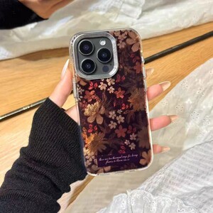 秋冬复古落叶棕色花朵苹果17promax手机壳适用16pro双层印花15pro