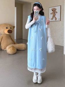 两件套装2025文艺简约蝴蝶结开衫针织长款毛衣+长款衬衫设计感