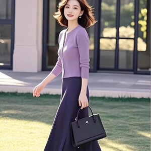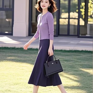 紫色针织套装女款2025春季新款气质韩版开衫上衣半身裙两件套