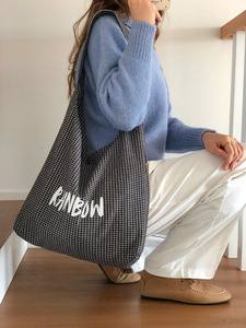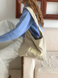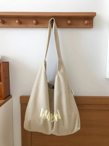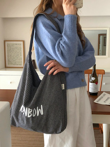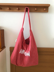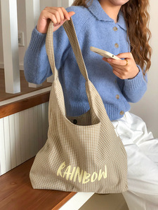 冬季格纹简约单肩女包出街购物包跨境格子休闲单肩女士出游包包
