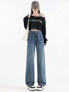复古阔腿裤牛仔裤女秋季2025年新款高腰宽松显瘦小个子直筒拖地裤