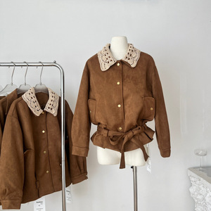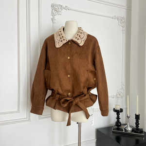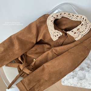 麂皮衣外套女2025新款秋季翻领夹克上衣宽松慵懒风