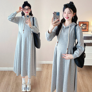 2025新款秋冬复古休闲连帽连衣裙秋季梨形身材卫衣裙孕妇连衣裙