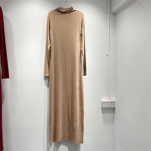 超长款半高领长袖莫代尔舒适休闲时尚修身显瘦秋季新款连衣裙女潮