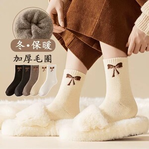 诸暨袜子蝴蝶结毛圈袜子女加厚保暖袜可爱睡眠袜韩系ins潮女袜
