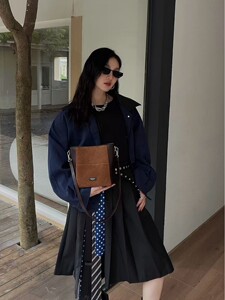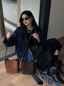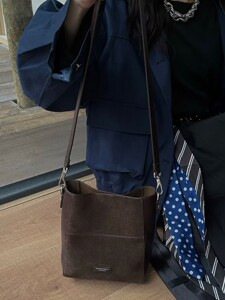 2025新款小众拼接磨砂皮单肩包大容量手提包简约斜挎子母包水桶包