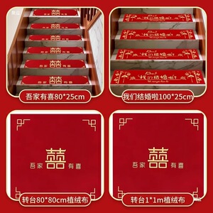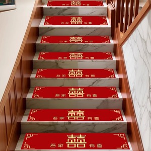 楼梯垫结婚踏步贴自粘加厚一次性红色地毯布置婚房装饰喜字台阶贴
