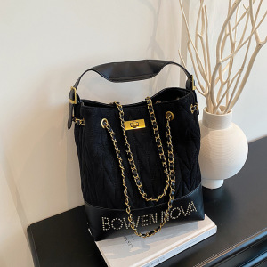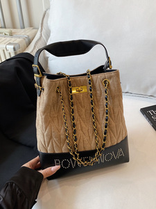菱格绣线包包女2025秋冬季新款百搭链条单肩斜挎包手提托特水桶包