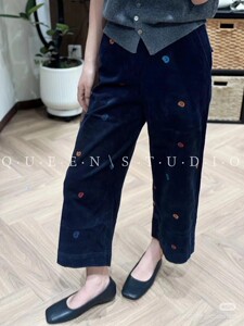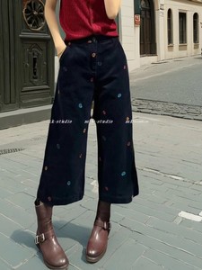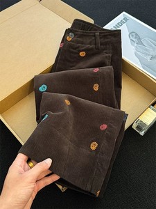 2025早秋新松紧带灯芯绒重工彩色刺绣腰果花腰八分裤54