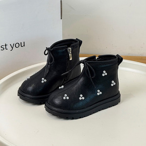 批发2025秋季新款时尚珍珠公主靴侧拉链公主风软底防滑短筒马丁靴