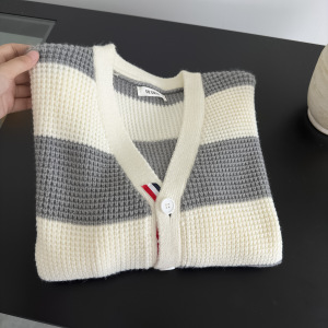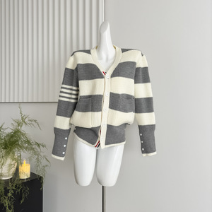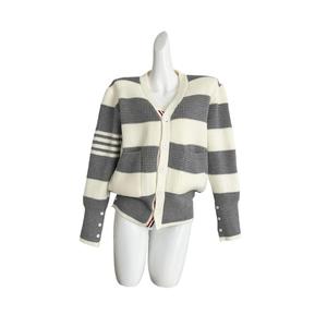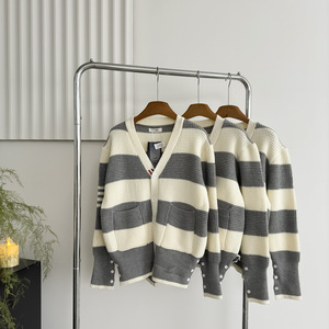 2025实拍秋季新款女式毛衣条纹开衫灰色百搭