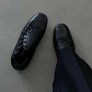 牛皮版~小众新款法式不规则系带抽褶德训鞋百搭后脚口抽褶小皮鞋
