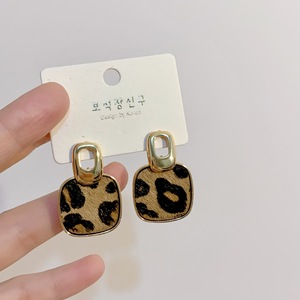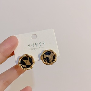 铜镀真金真马毛秋冬复古豹纹高级感耳环新款轻奢时尚耳钉耳饰银针