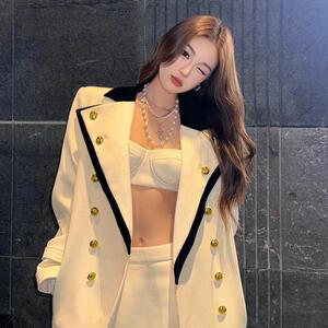 法式气质英伦御姐风长袖风衣西装外套宽松双排扣大衣春季新款女装