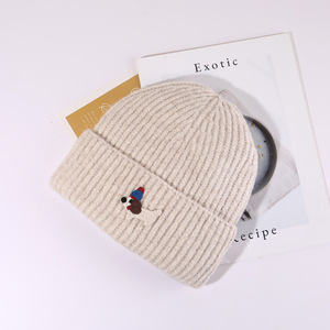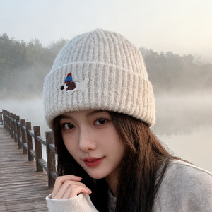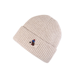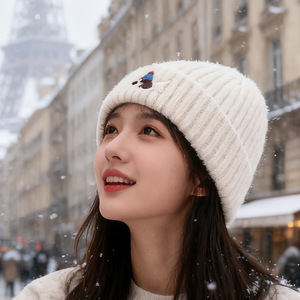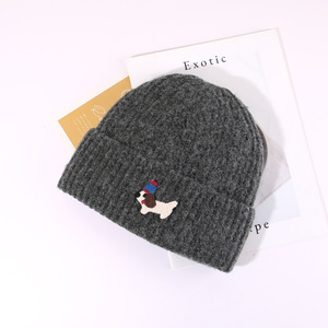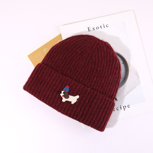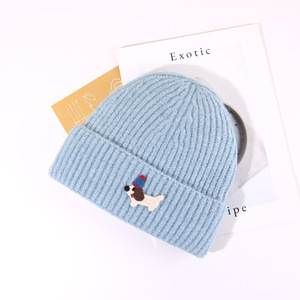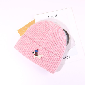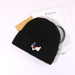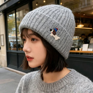 帽子秋冬可爱贴布小狗针织帽女保暖防寒包头冷帽显脸小护耳毛线帽
