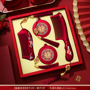 【福喜双至】-梳子一对圆镜一对(礼盒+礼袋)