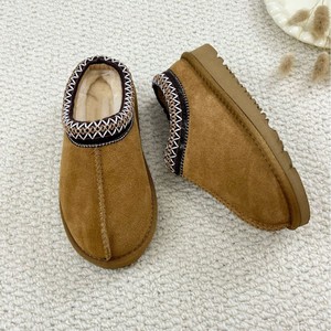 跨进外贸民族风编制雪地靴女低筒童鞋加绒保暖拖鞋塔斯曼冬季