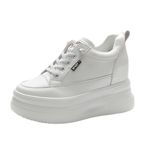 春秋新款厚底坡跟10厘米跟高小个子内增高休闲低帮小白鞋子女