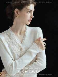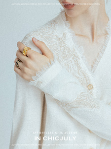 "薄雾朦胧"静奢风/恣意之境_水溶蕾丝極细羊毛打底针织开衫毛衣女