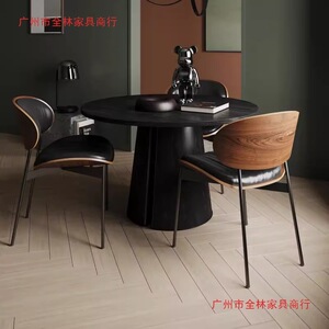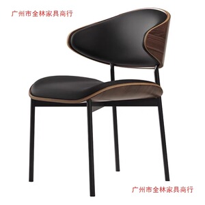 现代简约复古休闲商业主题餐厅伊姆斯餐椅北欧咖啡厅黑色真皮椅子
